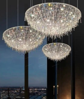 Đèn chùm pha lê trang trí do ĐÈN ÁNH SÁNG cung cấp được chế tác từ các hạt pha lê cao cấp, phần lớn các mẫu đèn đều sử dụng chất liệu pha lê K9 cao cấp nhất nhất hiện nay trên thị trường. Đèn chùm pha lê trang trí, đèn chùm pha lê phòng khách, đèn chùm pha lê phòng ngủ, hay đèn chùm pha lê thông tầng, trang trí sảnh chờ, cầu thang v.v… là những dòng đèn cao cấp, thể hiện gu thẩm mỹ tuyệt vời của chủ nhân, tôn lên nét sang trọng, lộng lẫy cho mọi không gian, từ không gian gia đình, cho tới nhà hàng, khách sạn. Đèn chùm pha lê khi tắt điện bản thân nó sẽ là một tác phẩm nghệ thuật, tới khi bật lên, những bóng đèn Led hoặc những dải led màu sẽ phản chiếu tới các viên pha lê trong suốt, khúc xạ những tia sáng đa màu sắc để tạo nên một không gian vô cùng lung linh huyền ảo. Đèn chùm pha lê trang trí không chỉ phù hợp với các không gian luxury, tân cổ điển mà ngày nay còn được sử dụng ở nhiều không gian mang phong cách hiện đại, tối giản, quan trọng là bạn chọn được mẫu đèn phù hợp. ĐÈN ÁNH SÁNG cung cấp đầy đủ các dòng đèn chùm pha lê từ loại cao cấp nhất cho tới các mẫu đèn chùm hiện đại có giá phải chăng (nói KHÔNG với hàng gia công giá rẻ). Chúng tôi luôn sẵn lòng tư vấn mọi thắc mắc băn khoăn của bạn! Hãy gọi hoặc chat Zalo với chúng tôi để lựa chọn mẫu đèn chùm pha lê phù hợp nhất! Hotline: 0912464333 – 0988836535 – 0911251251