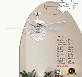 Kích thước: Ø1420xH345mm, Led 3 màu, công suất: 50W, động cơ DC,màu sắc: đồng đỏ